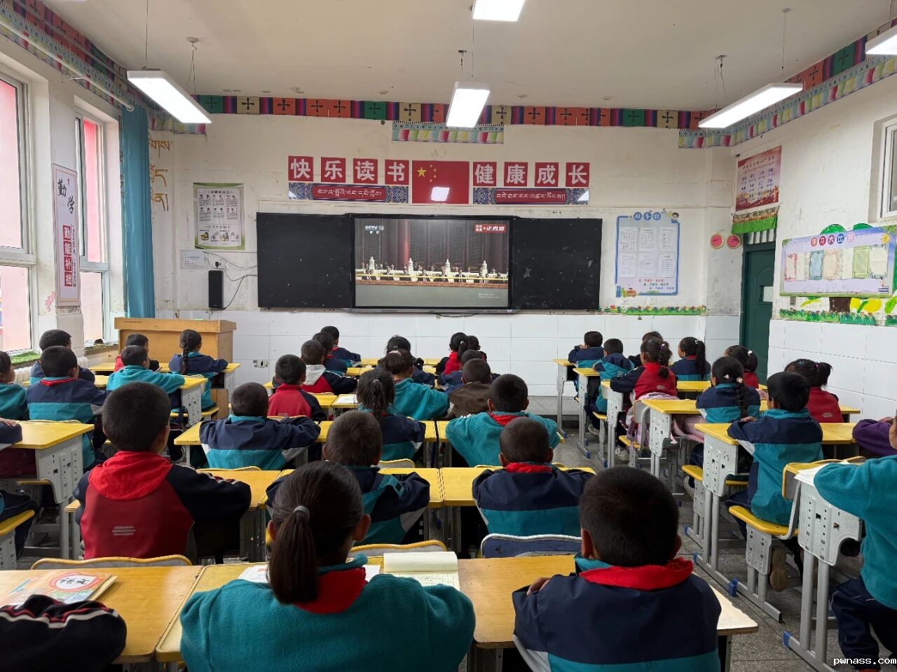 在夏河中学的教室里,全校师生通过多媒体设备同步观看阅兵。当阅兵方阵经过天安门广场时,教室里爆发出雷鸣般的掌声。夏河中学教师肖占云说:“作为教师,我深知自己肩负着培养下一代的重任。我将以此次阅兵式为契机,在教学工作中引导学生铭记历史,传承和发扬伟大的抗战精神,培养学生的爱国情怀和责任感,让他们明白如今的和平来之不易。我也会激励学生努力学习,引导孩子们将个人梦想融入国家发展,以知识报国,以实干兴邦,成为有理想、有担当的新时代建设者,为实现中华民族伟大复兴的中国梦而奋斗。”