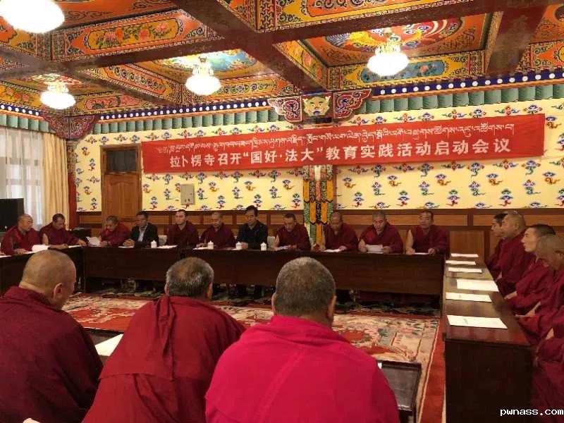 9月10日上午,拉卜楞寺召开“国好·法大”教育实践活动启动会议,省佛教协会副会长、秘书长安兴虎,省佛教协会副会长、省佛学院副院长郭莽仓出席会议。拉卜楞寺中心学习组全体成员、各学习小组及拉卜楞寺庙办公室负责人等160余人参加会议。会议传达学习了省委常委、省委统战部部长、省政协党组副书记马廷礼同志在全省宗教界疫情防控座谈会暨“国好·法大”教育实践活动启动会上的讲话及甘肃省佛教协会关于在全省佛教界开展“国好·法大”教育实践活动的相关文件精神和实施方案,印发并宣读了《拉卜楞寺开展“国好·法大”教育实践活动实施方案》,对在拉卜楞寺开展“国好·法大”教育实践活动进行了安排部署。会议指出,在宗教界开展“国好·法大”教育实践活动是贯彻落实习近平总书记对甘肃重要讲话和指示精神的实际举措、是深化宗教界爱党爱国教育的有效抓手、是做好我县宗教工作的现实需要,拉卜楞寺要充分认识开展“国好·法大”教育实践活动的重大意义,指导好、组织好教育实践活动,秉承起拉卜楞寺优良的学习教育传统,在教育实践活动中,扬长补短,去粗取精,切实凝聚起建设和谐法治寺院的强大合力。
