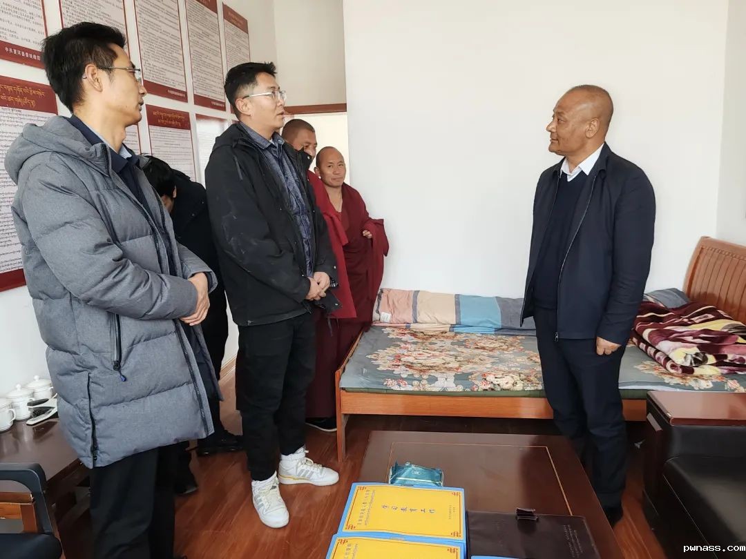 杨海强首先来到甘加镇作海寺看望慰问了泽秀仓活佛与寺管会成员,与他们亲切交谈,仔细询问了他们的日常生活和身体近况,详细了解寺院僧人的学习教育、规范管理、日常生活及佛事活动开展等情况,并希望寺主活佛与寺院僧众一如既往继承和发扬藏传佛教爱国爱教优良传统,不断提升宗教修养,研习经典、精进学识,勤学政策法规,积极宣传党的民族宗教政策,团结引导信教群众坚决拥护中国共产党的领导,持续深入开展“三个意识”教育,增进宗教界人士和信教群众“五个认同”,严守“十个坚决不允许”底线,深化“党亲·国好·法大·家乡美”教育实践活动,自觉做到“政治上靠得住、宗教上有造诣、品德上能服众、关键时起作用”,教育引导信教群众遵纪守法,与党委政府在思想上同心同德、行动上同频共振、工作上同向发力,持续巩固民族团结、宗教和顺、社会稳定的良好局面。
