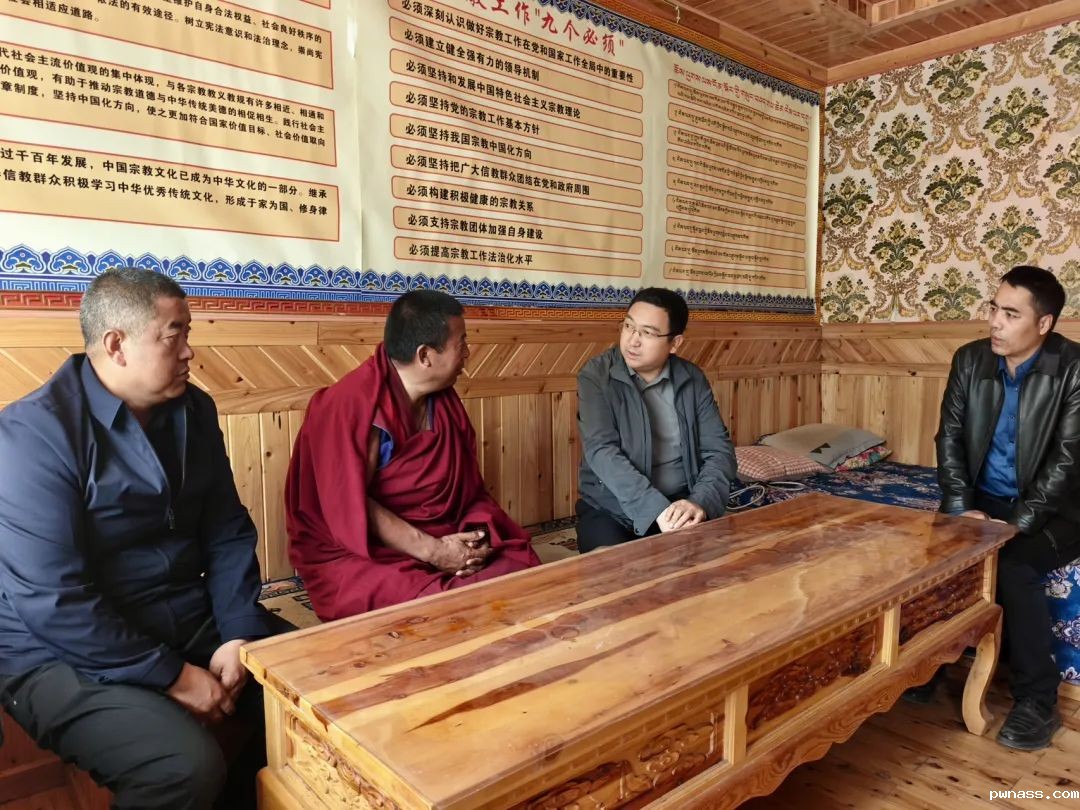 在唐尕昂乡麻隆寺、麻当镇格尔德寺,杨振林与寺庙办工作人员、寺管会成员亲切交谈,详细了解常态化开展宗教领域“国家意识、公民意识、法治意识”学习教育情况、寺庙管理、控辍保学、寺庙基础设施建设等工作开展情况。他强调,要不断巩固拓展宗教领域“三个意识”学习教育活动成果,扎实开展“感恩共产党 奋进新时代”教育活动,引导广大僧人不断增强“五个认同”。要落实好寺管会“教育、管理、服务”三大职能,强化管理,积极引导僧众和信教群众听党话、感党恩、跟党走。要依法加强宗教事务管理,坚持管理与服务并重,严格落实僧人请销假、财务公开、宗教活动审批报备等制度,全面提升寺庙管理法治化制度化规范化水平。要不断巩固控辍保学成果,压实责任,强化措施,广泛开展宣传教育,完善动态监测。要及时协调解决寺庙和僧人实际困难,使广大僧人切实感受到党和政府的关怀。
