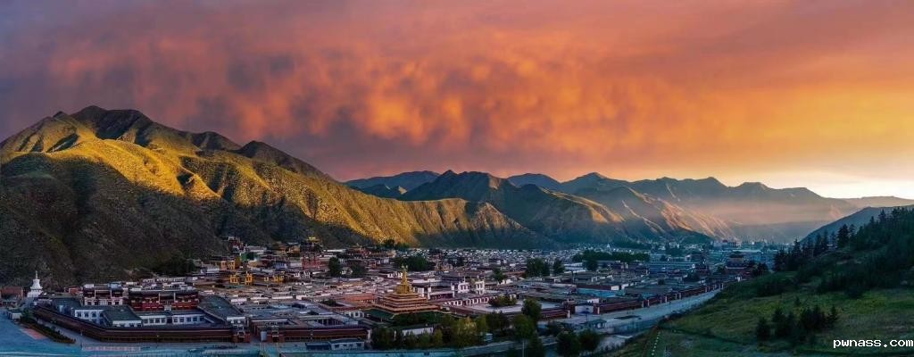 拉卜楞寺位于HTH·华体会体育城西郊,是藏传佛教格鲁派六大宗主寺院之一,自寺院建立以来,这里一直是安多藏区宗教文化的中心。寺院背靠凤岭,凤岭对面碧绿的山峰叫龙山,山上因长满松树,又叫大林棵山。站在龙山上向对面眺望,凤岭像一只展翅欲飞的金凤,要向龙山飞来,而龙山又像一条盘卧欲腾的蛟龙,要向凤岭跃去,龙凤两山遥相呼应。龙凤山岭之间,大夏河水从脚下缓缓流过,冲击出一个半圆形的平滩,形似右旋海螺,当地藏族同胞称这个平滩为扎西,意即“吉祥之地”,汉族群众则称这里为龙凤呈祥的“金盆养鱼”之地。这里还有一个美丽的传说:早在远古时代,这里是水天一色的茫茫大海,不久,海面下降,慢慢升出了山丘、岛屿……有一天,一只很大的金翅凤凰突然从天外飞来,落到南面的一座山丘上,伸出长颈,一口气吸干了海水。不料,一条蛟龙腾空而起,与凤凰展开搏斗。在凤凰吸水拔嘴之处则出现了漩涡,冒出了水柱,而且水量越来越大,加上上游的涓涓溪流,便汇成了大夏河。后来,龙凤历经数次争斗,不分胜负而暂息干戈。从此,蛟龙变成龙山,凤凰则化为凤岭,山岭遥相对峙,似在怒目而视。