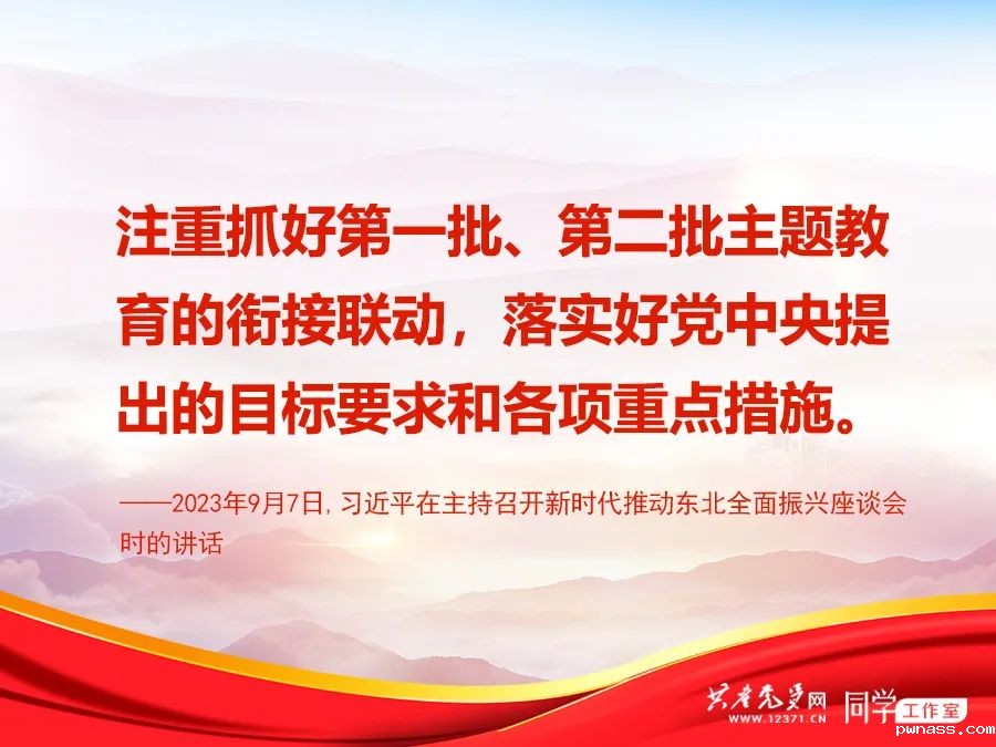 2023年9月7日,习近平在主持召开新时代推动东北全面振兴座谈会时强调,要注重抓好第一批、第二批主题教育的衔接联动,落实好党中央提出的目标要求和各项重点措施。