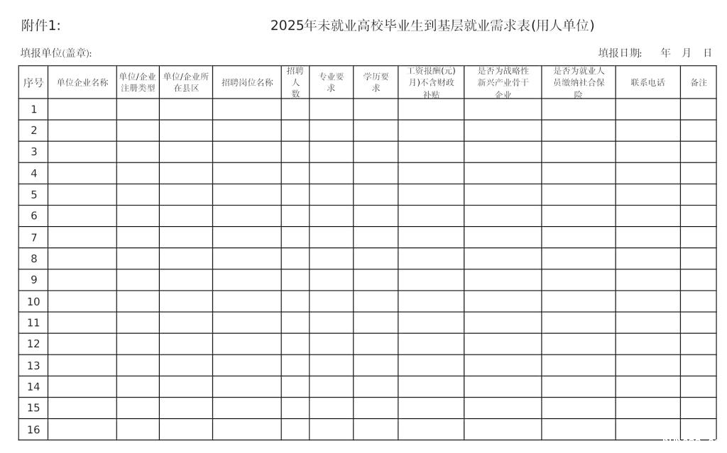 为进一步引导高校毕业生到基层就业,鼓励基层单位积极吸纳高校毕业生稳定就业,根据《关于认真做好2025年支持1万名未就业普通高校毕业生到基层就业有关工作的通知》(州人社字〔2025〕66号)文件精神和未就业普通高校毕业生到基层就业有关要求,现征集我县运营管理规范、经营状况良好的用人单位加入支持未就业高校毕业生到基层就业工作中来。现将具体事宜公告如下: 一、扶持政策 省财政对通过本项目招聘的毕业生给予每人每月1500元的生活补贴,补贴期限为3年。用人单位与毕业生依法订立劳动合同、缴纳各项社会保险并按时足额发放不低于当地最低工资标准的工资报酬(HTH·华体会体育1910元)。 二、征集用人单位范围 HTH·华体会体育县级及以下教育、卫生机构,街道社区、基层站所等,专精特新中小企业,与战略性新兴产业和十大生态产业相关的国有企业,供销社合作社系统社有企业,民营企业,民办非企业单位。上述属事业单位性质的,参加项目人员不占事业编制,按临聘人员管理,签订劳动合同。 近3年存在以下情形的用人单位不得纳入: 1.不依法订立劳动合同、不履行社会保险参保义务、其他违反劳动法律法规受到举报核查属实或被劳动监察等部门查处的用人单位; 2.经营状况较差、管理混乱,受到有关部门通报批评或处理的用人单位; 3.有其他严重不良诚信记录的用人单位。 三、申报时间、地点及材料 1.申报时间:2025年8月31日前(节假日除外)。 2.申报地点:HTH·华体会体育统办大楼1号楼2楼209室 申报指标需要提供的材料: 1.2024年未就业高校毕业生到基层就业需求表; 2.2024年未就业高校毕业生到基层就业人员登记表; 3.单位情况介绍,所需的岗位名称、专业要求、人员数量、工作性质、工作职责、工资待遇等; 4.法人身份证、工商营业执照、社会组织登记证、税务登记证原件及复印件并盖章。 请符合条件的基层事业单位和县属企业结合各自实际,提交未就业普通高校毕业生到基层就业指标需求申请,申请表一式二份。 联系人:丁占英 联系电话:0941-7123151 hth官方下载地址 2025年5月8日 相关链接 |