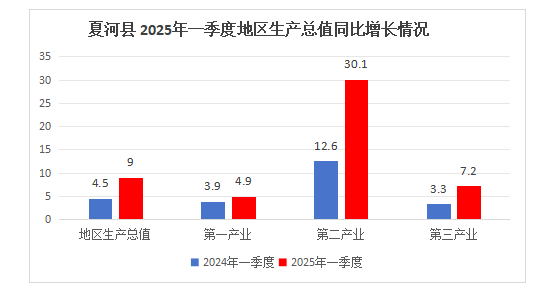 根据地区生产总值统一核算结果,2025年一季度全县地区生产总值为71861万元,同比增长9%。其中,第一产业增加值为13245万元,同比增长4.9%;第二产业增加值为9394万元,同比增长30.1%;第三产业增加值为49223万元,同比增长7.2%。