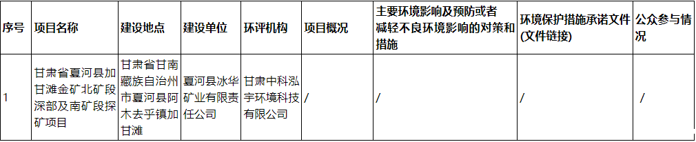 根据建设项目环境影响评价审批程序的有关规定,经审查,我局拟对1个建设项目环境影响评价文件作出审批意见。为保证此次审查工作的严肃性和公正性,现将拟作出审批意见的环境影响评价文件基本情况予以公示,公示期为2023年05月10日-2023年05月17日(5个工作日)。 听证权利告知:依据《中华人民共和国行政许可法》,自公示起五日内申请人、利害关系人可对以下拟作出的建设项目环境影响评价文件审批意见要求听证。 联系电话:0941-8218633 邮 箱:hpk8218633@126.com 地 址:甘南州合作市当周南街117号 邮 编:747000 一、拟批准环境影响评价文件的建设项目