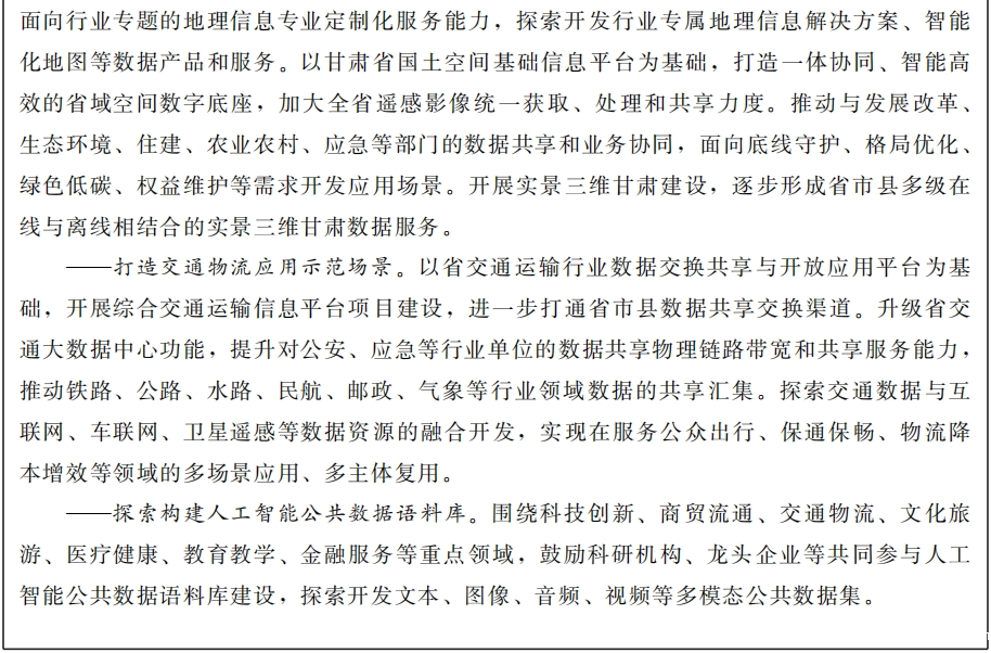 七、繁荣数据产业发展生态 (十五)培育壮大多元经营主体。培育壮大数据采集汇聚、计算存储、流通交易、开发利用、安全治理和数据基础设施建设等经营主体。发展或引入产品发现、市场拓展、合规认证、安全审计、质量评价、资产评估、争议仲裁、风险评估、教育培训等第三方专业服务机构。优化整合省属国有资产和人才队伍资源,积极培育西部数据要素汇聚、供给、配置及市场化开发利用的领军企业。制定数据要素型企业评估认定办法和数据基础设施企业发展支持措施,落实研发费用加计扣除、高新技术企业税收优惠等政策,支持数据产业做强做优做大。支持数据行业协会、学会等社会团体和产业联盟发展,建立数据要素行业自律机制,推动建立数据开放应用社区,促进公共数据与多元数据融合开发利用。 (十六)优化数据要素产业结构。支持整合丝绸之路西北大数据产业园、甘肃庆阳东数西算产业园等平台资源,建立集技术创新、产业培育、创业孵化、培训认证、咨询服务等为一体的数据要素产业聚集区,制定配套建设规划和企业用数、用云、用电、用地等便利政策,降低企业治数用数成本,吸引龙头企业落地。以人才、资金、算力等资源集聚效应,带动人工智能、低空经济、元宇宙等数据密集型产业发展,打造甘肃省“算力+大模型+数据”产业协同规模优势。以兰州、庆阳为数据要素产业发展的核心区域,辐射带动张掖、平凉、酒泉、临夏、白银等地的算力、大数据、云计算、新材料、智能制造等产业发展,鼓励各地因地制宜构建特色鲜明、优势互补的产业格局。 (十七)推动数据产业跨域合作发展。依托“东数西算”工程,加强与中东部地区在算力资源调度、数据要素流通、人工智能及大数据等领域相关技术研究和产业发展方面的跨域合作。抢抓共建“一带一路”机遇,发挥丝绸之路“黄金段”区位优势和中国兰州跨境电商综合试验区开放试点优势,深化西部数字陆海新通道建设,加强同“一带一路”沿线国家和地区在数据跨境流动、数据出境安全评估等领域的合作交流。 八、强化数据安全保障 (十八)构建公共数据安全保障体系。加强对涉及国家安全、商业秘密、个人隐私等数据的保护。建立健全公共数据资源开发利用安全风险识别评估、监测预警、应急处置等数据安全规范体系,明确数据资源生产、加工使用、产品开发及经营等全过程相关主体安全责任,开展事前、事中、事后业务规范性审查和监督管理。加强数据安全联管联治,严厉打击非法获取、出售或提供数据的黑灰产业,严禁超出授权范围使用数据,严格管控未依法依规公开的原始公共数据直接进入市场。 (十九)提升数据安全保障能力。加强公共数据可信采集、加密传输、可靠存储、受控交换共享、实时分析、智能应用、销毁确认及存证溯源等环节的安全技术支撑,有效规避数据隐私泄露、违规滥用等风险。推动“数盾”体系试点示范工程建设,提升数据汇聚关联风险识别和管控水平。培育数据流通安全检测、评估、审计、公证等第三方专业服务机构,壮大数据安全治理服务规模,提升安全服务效能。探索运用数据沙箱等技术,构建鼓励创新、弹性包容的治理环境。 九、保障措施 加强党对数据工作的全面领导。各级数据主管部门会同相关行业部门形成工作合力,统筹推进全省公共数据资源开发利用。推行首席数据官制度,加强数据人才队伍支撑,构建数据要素专业人才培养体系。将提高做好数据工作的能力纳入干部教育培训内容。组建甘肃省数据专家咨询委员会,指导解决公共数据资源开发利用中的相关问题。强化多元渠道资金支持,鼓励各类金融机构加大对数据要素型企业和数据基础设施企业等融资支持力度,引导社会资本有序参与公共数据资源开发利用活动。各地各部门可结合实际需要统筹安排数据产品和服务采购经费,强化对公共数据资源治理和开发利用的资金保障。各地可探索开展公共数据资源开发利用绩效考核,依法依规向审计机关开放公共数据资源目录和开发利用情况。鼓励围绕公共数据资源质量、公共数据产品应用成效等维度开展公共数据资源开发利用成效评价和第三方评估。 相关链接 |