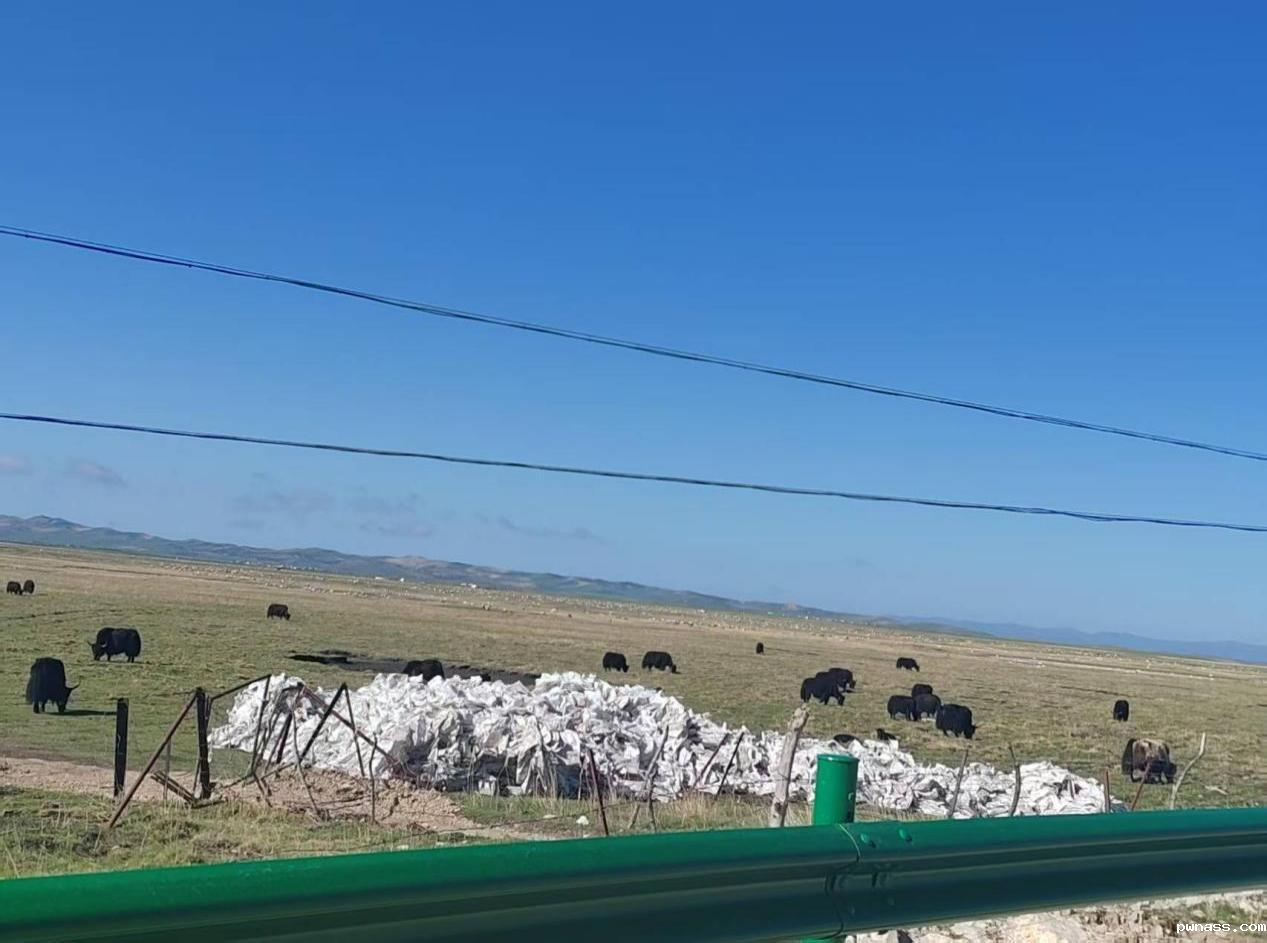 16.玛曲县大水种畜场公路沿线乱堆废弃塑料袋;
