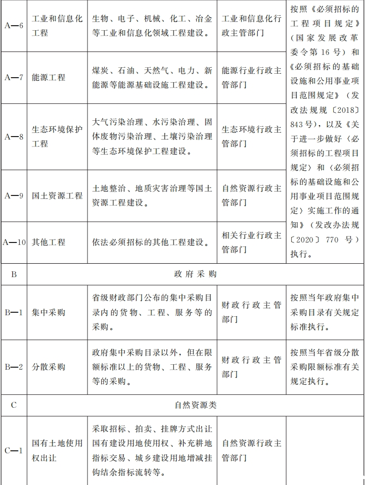 甘政办发〔2024〕56号 各市、自治州人民政府,甘肃矿区办事处,兰州新区管委会,省政府各部门,中央在甘各单位: 为持续拓展公共资源交易平台交易覆盖范围,进一步提高公共资源配置效率,经省政府同意,对《甘肃省公共资源交易目录(2020年版)》进行了修订调整,形成了《甘肃省公共资源交易目录(2024年版)》(以下简称《目录》),现印发给你们,并就有关事项通知如下: 一、《目录》内依法必须招标的项目应当进入各级公共资源交易平台交易,法律、法规、规章及国家有关行业行政主管部门另有规定的,从其规定。 二、有关行政监督部门按照职责分工,负责推进《目录》内项目纳入公共资源交易平台交易,并依法依规对公共资源交易活动实施监督。 三、本《目录》自印发之日起施行。《甘肃省人民政府办公厅关于印发〈甘肃省公共资源交易目录(2020年版)〉的通知》(甘政办发〔2020〕122号)同时废止。 甘肃省人民政府办公厅 2024年6月17日 (此件公开发布) 甘肃省公共资源交易目录(2024年版) 甘肃省人民政府办公厅关于印发《甘肃省公共资源交易目录(2024年版)》的通知.PDF 相关链接 |