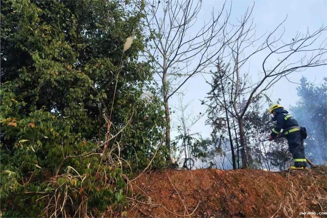 所幸消防救援人员及时赶到 未造成人员伤亡 案例三 1月17日,在赣州市南康区 3名儿童在河边燃放“窜天猴” 不料火星“窜”进了树林 引燃了草木